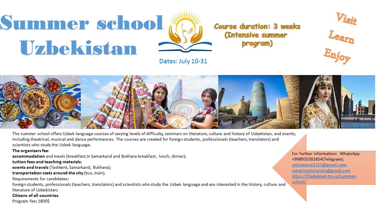 - Citizens of all countries. How to apply? Along with the application, you must provide a resume in Russian or English. Organizers may also request other documents. For application https://tiladabiyot-tm.uz/summer-school/